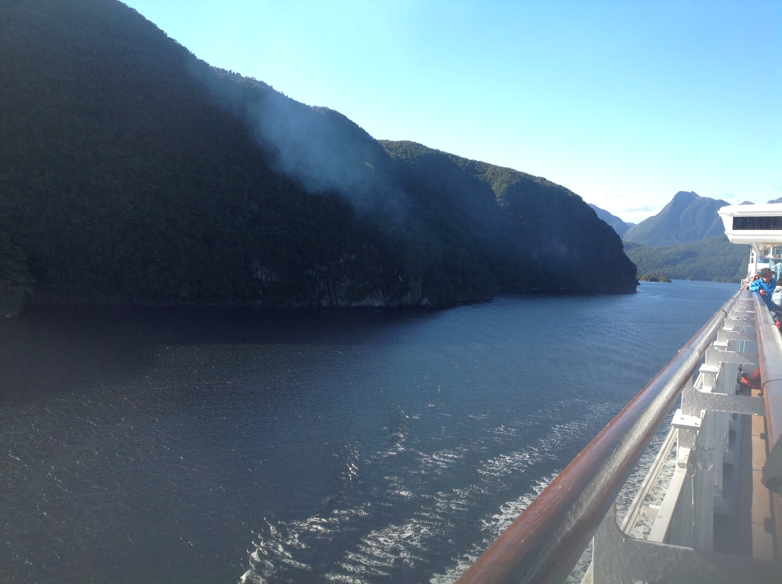 The ship squeezed in between two mountains. According to a legend, the demi-god Tuterakiwhanoa is said to have carved the rugged landscape from formless rock.