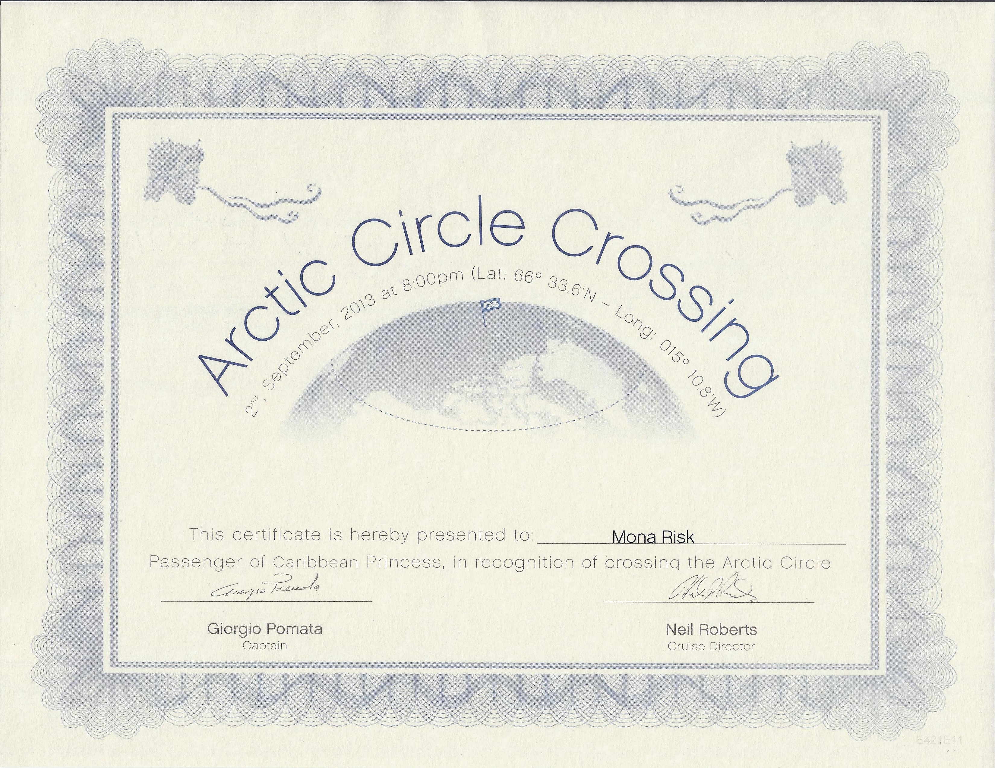 After three days in beautiful Iceland we crossed the Arctic Circle and were awarded a certificate by the Captain.